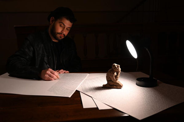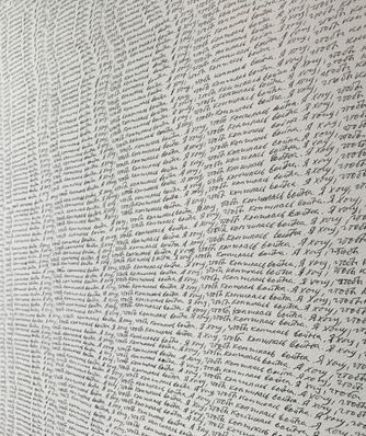 A series of performative graphics consisting of several sheets of paper, each quote the phrase I Want the War to End in four languages - Ukrainian, Russian, French, and English. The time spent creating these sheets becomes intangible capital and an important component of this work.