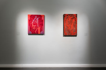The Tremors of the Earth series takes found or purchased fabrics as a foundation for the constituent paintings. They serve as evidence of a certain material culture. “This sort of a construction set of fabrics is like building blocks of the day-to-day,” explains the author. “Where ready-made objects act as containers or marks of time.” Some pieces of fabric are used as a whole, others bear a seam, which creates a kind of layering or collision. Instead of masking them, Kushaev makes these seams deliberately prominent with “rugged lines”. The paintings gravitate towards sculpture due to the layered technique: pattern and reliefs on the surface, the tangibility of paint, the scattered figures — all serve to drive tension that continuously adjusts the viewer's optics. The artist sees the stretcher frame and canvas as a household item: